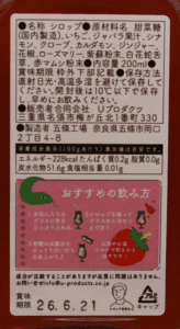 糖の甘さをベースに、いちご・ジャバラの果汁・シナモン・クローブ・カルダモン・ジンジャー・花椒・ローズマリー・紫蘇粉末・白花蛇舌草(はくかじゃぜつそう)・そして赤マムシ粉末。